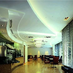 wurde in einer mehrfach abge-stuften Trockenbaukon-struktion
